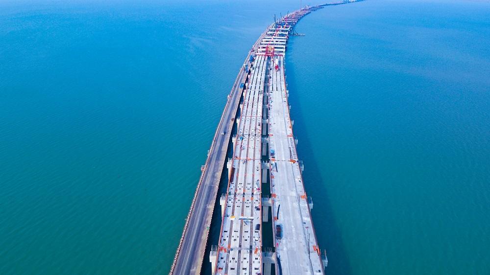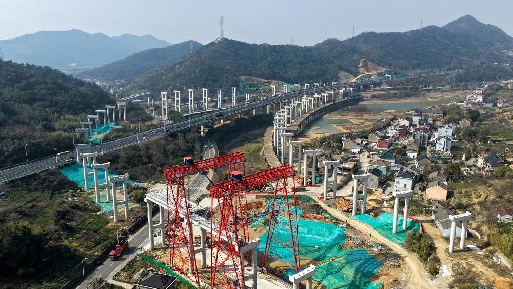 浙江甬舟高速公路复线一期金塘互通枢纽建设正酣