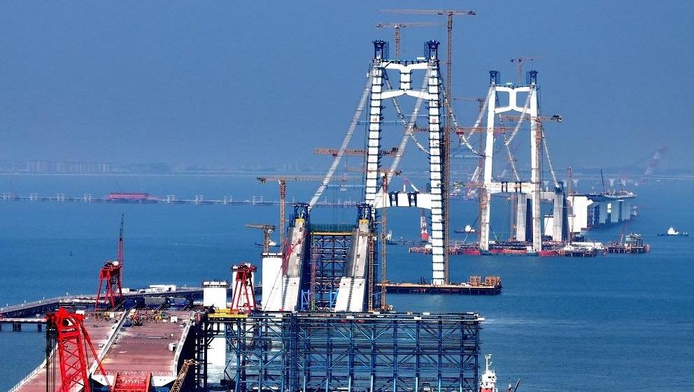 狮子洋大桥双主塔封顶