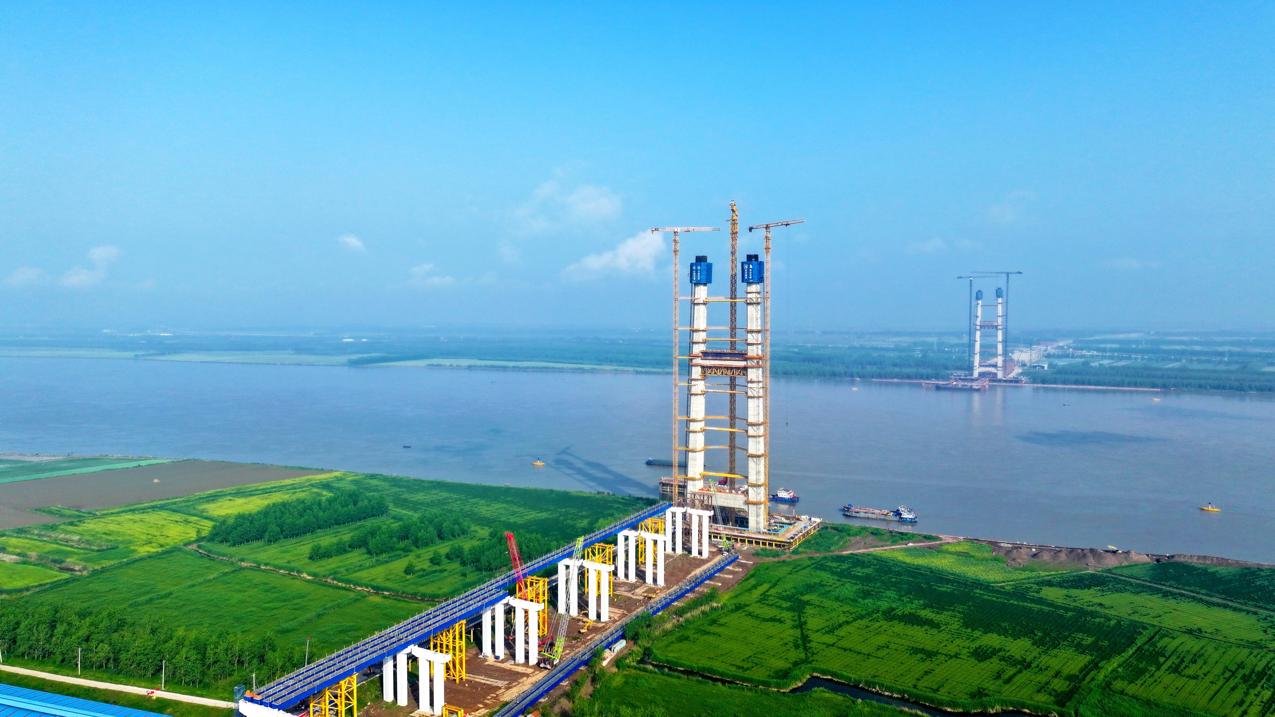 崇启公铁长江大桥南北岸“牵手”近在咫尺