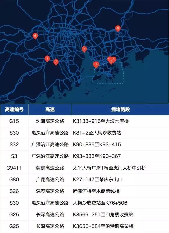 珠三角地区易堵高速