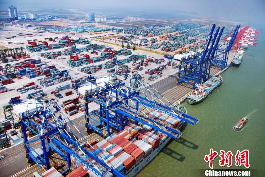 繁忙的南沙港区。南沙将通过吸引国际船舶到南沙自贸区注册登记,带动更多高端航运要素聚集。