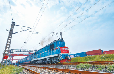 丝绸之路上的西安港是无“水”之“港”,不沿江、不靠海,却能联通四方、买卖全球,海铁联运、陆空联运等逐渐成为运输新常态。图为西安—华沙中欧班列从西安港出发。新华社发
