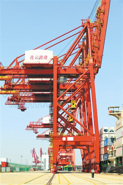 “乌鲁木齐—连云港—新德里”首列公铁海联运班列抵达江苏连云港,并在这里转海运前往印度。郑永波摄(人民视觉)