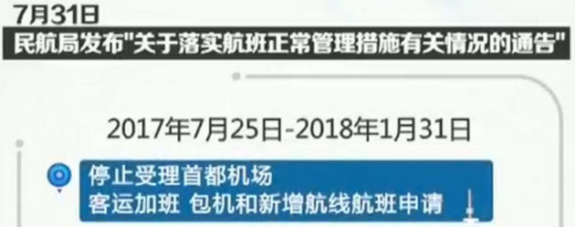 首都机场因为4-6月连续三个月数据不达标,自7月25日起至2018年1月31日停止受理其客运加班、包机和新增航线航班申请,浦东机场6月数据已达标,但因2-5月份连续四个月数据不达标,自7月25日起至12月31日停止受理其客运加班、包机和新增航线航班申请。在首都机场、浦东机场受限期间,按照航班总量不增加的原则,可在调减其现有航班后批准新增国际及港澳台航线航班的时刻申请。
