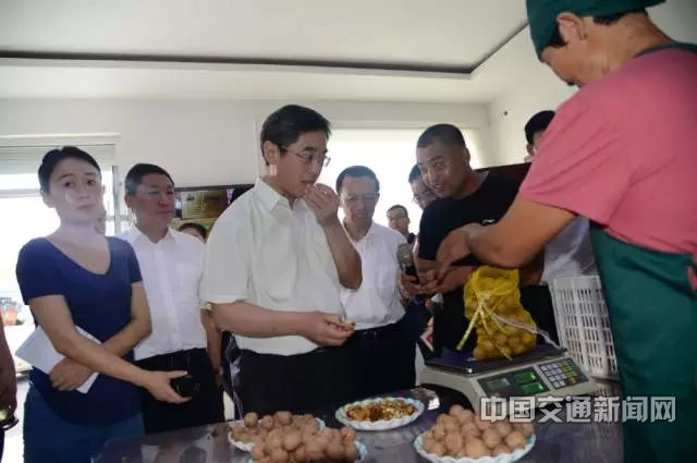 交通运输部副部长戴东昌(右二)、山东省政府副省长王书坚(左三)、部公路局局长吴德金(右一)、山东省临沂市市长张术平(右三)等领导在临沂市参观、了解当地“四好农村路”情况。张伟摄