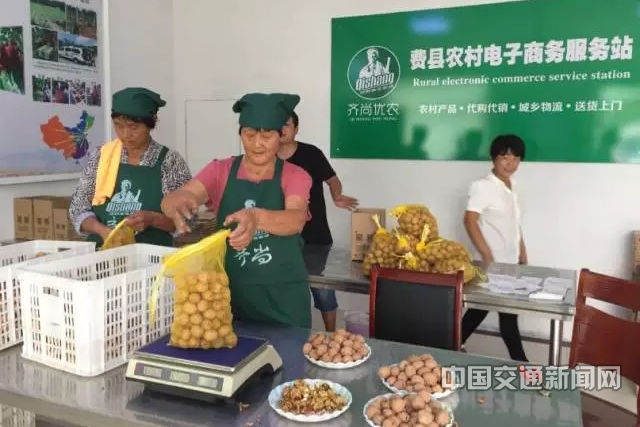 费县农村电子商务服务站,村民正在包装新摘下的核桃,放到电商平台上进行销售。本报采访组摄