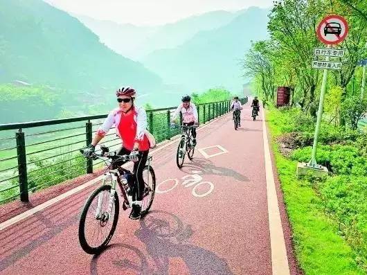 “这条旅游公路是一条致富路、健康路、文明路、亲情路。”看着穿镇而过的旅游公路,赤水市元厚镇一位干部很是自豪:“原来镇上的居民们晚饭后都会打打小麻将。如今,麻将桌上人少了,红色自行车道上的人多了,一家人骑上租来的4轮自行车,边聊天边锻炼身体。”
