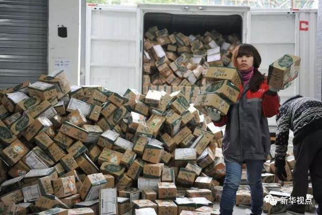资料图片:快递员闫勇在快递点清点货物 新华社记者 罗晓光 摄