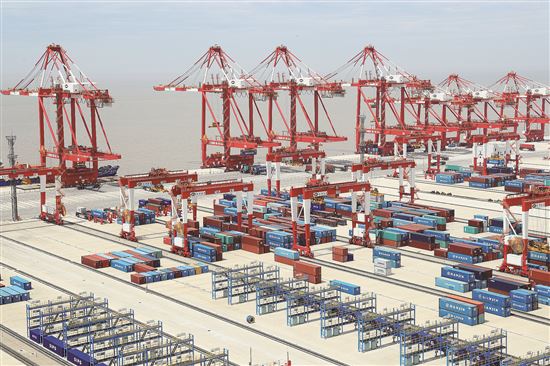 上海洋山港区四期。这将是全球规模最大、最先进的全自动化码头。