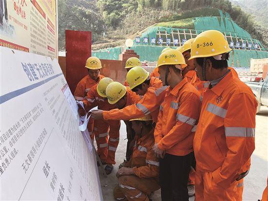 莆炎高速公路福建福州A4标段尖峰山隧道工区,工人们正在核对工资发放表。王猛毅 摄