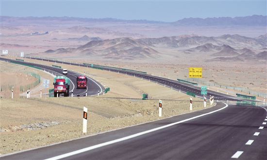 京新高速公路内蒙古临河至白疙瘩段是世界上穿越沙漠最长的高速公路,有近500公里路段为无人区。