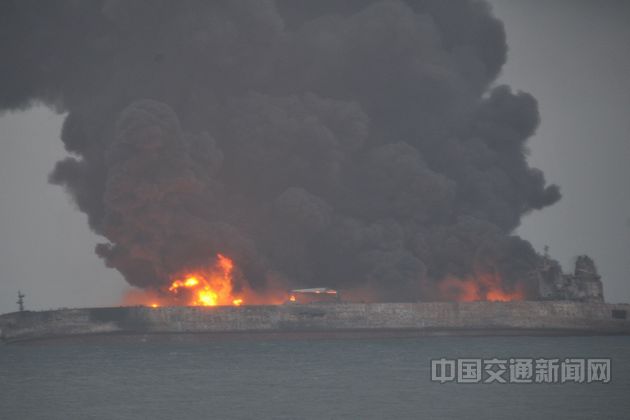 本网讯 2018年1月6日20时许,巴拿马籍油船“SANCHI”轮与香港籍散货船“CF CRYSTAL”轮在长江口以东约160海里处发生碰撞。事故造成油船“SANCHI”轮全船失火,船舶右倾,船员失联;散货船“CF CRYSTAL”轮有破损,不危及船舶安全,21名船员已被安全救起。