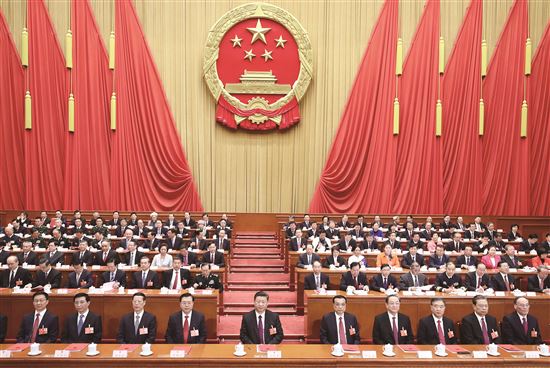 3月20日,第十三届全国人民代表大会第一次会议在北京人民大会堂闭幕。习近平等党和国家领导人在主席台就座。 新华社记者 鞠鹏 摄