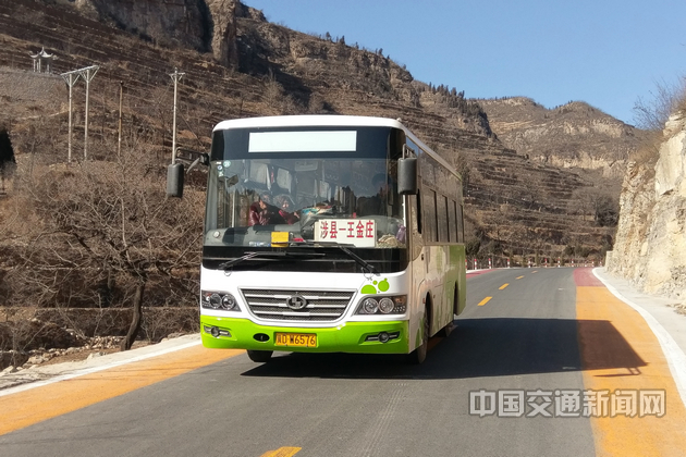 涉县至王金庄的城乡客运公交车行驶在井关线王金庄段公路上。张付平 摄