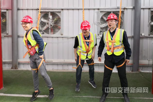 在安全方面,除了做好施工前的安全防范工作,施工人员在进入施工现场前,无一例外要进行全面的安全培训。在上千平方米的安全培训基地里,施工人员要体验安全帽撞击、安全鞋冲击、安全带使用、洞口坠落等项目,切身感受危险来临时安全设备的重要性。工人还可通过VR技术模拟的逼真场景,学习安全知识。