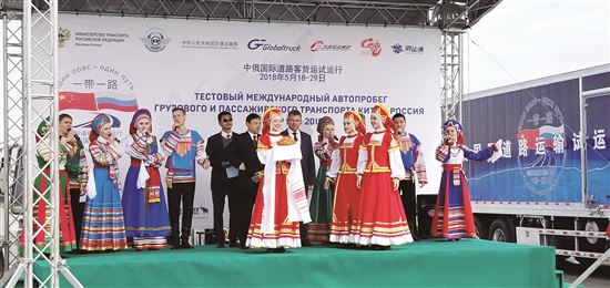在中俄两国政府和企业的共同努力下,中俄国际道路运输试运行活动成功开展。这是落实中俄两国元首会晤精神的重要体现,是加强中俄合作、推动“一带一路”倡议同“欧亚经济联盟”有效对接的重要举措,是深化拓展双边交通运输和经贸合作、构建区域经济发展新格局的重要措施,将为丝绸之路经济带沿线国家开展互联互通建设提供示范作用。