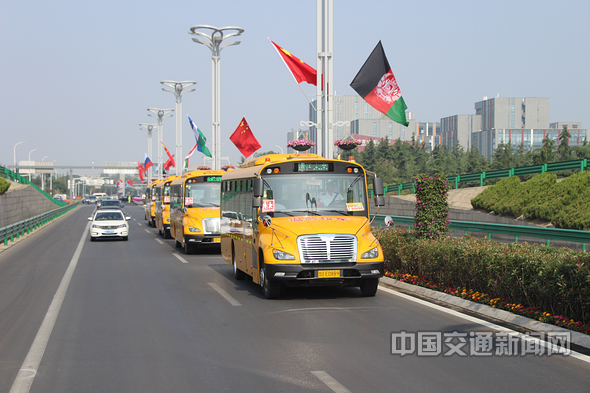 青岛机场迎宾路上装饰一新,迎接各国宾客到来。交运温馨校车也迎着清晨第一缕阳光行驶在路上接送“祖国的未来”。高伟绪 供图