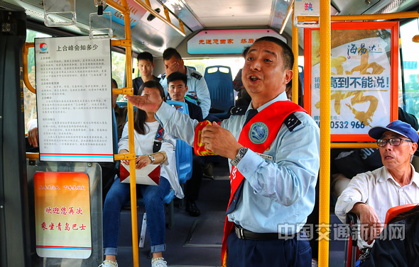 峰会期间,青岛市内五区213条公交线路上全部配备了乘务管理员,为峰会提供安全放心的出行环境。宋晓蕊 供图