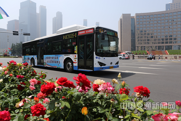 交运温馨巴士200余辆公交车“盛装”上路,车厢内外全部更换上“上合峰会”主题外观和相关知识介绍,为上合峰会顺利召开营造良好的社会氛围。詹海林 摄