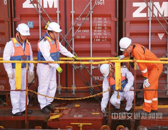 上合峰会期间,为保障青岛海域安全,山东海事局加强海上安全监管。这是海事执法人员在进行船舶安全检查。 特约记者 马桂山 摄