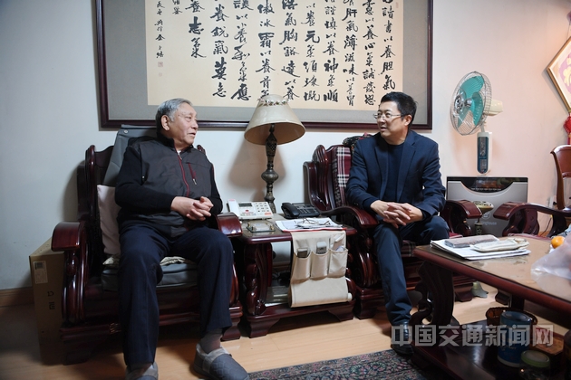 原交通部副部长刘锷(左)接受“见证40年主题访谈”采访组采访。 记者 林芬 摄