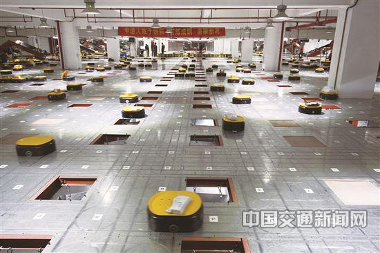 快递企业的智能机器人分拣系统。