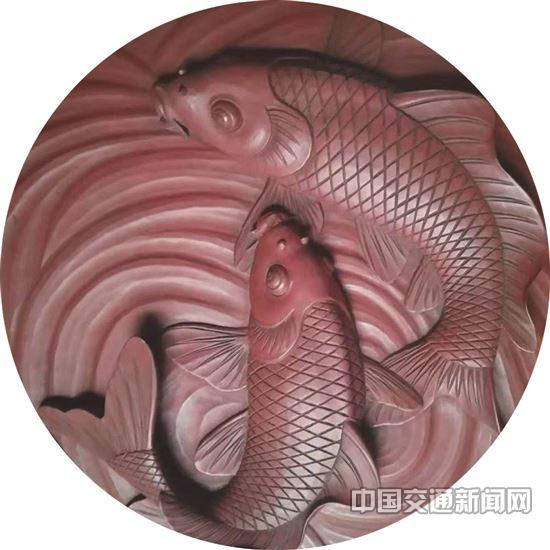 日本船级社赠送的鲤鱼跃龙门雕漆盘。