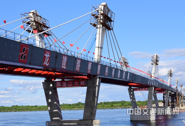 据了解,黑河黑龙江大桥由两国1988年共同提议建设。项目全长19.9公里,桥梁长1284米,为双车道矮塔斜拉桥,标准为二级公路。项目在中方境内长6.5公里,俄方境内长13.4公里,总投资为24.7亿元。项目采用中俄双方成立合资公司“贷款建桥、同步建设、共同运营、收费还贷”的跨境基础设施建设新模式修建,于2016年12月24日开工,计划工期三年,预计今年10月主体交工,12月交工验收。
