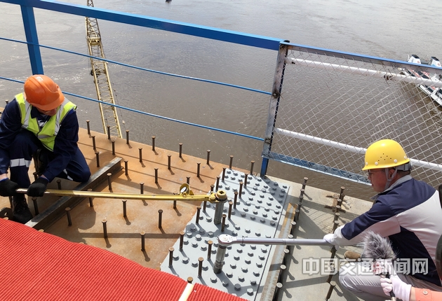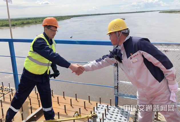 中俄两国有关部门负责人,大桥建设者参加合龙仪式。大桥建成后,预计到2020年客运量可达140万人次,货运量可达300万吨,将成为促进边境地区繁荣发展的新桥梁、巩固和深化传统友谊的新纽带。
