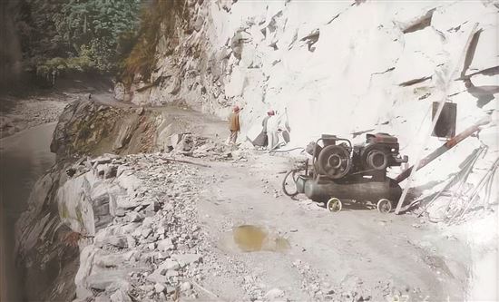 2000年,林芝公路分局机械化养护队抢通通麦飞石崖路段。蒋峰 供图