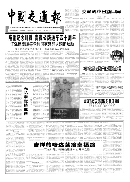 在“两路”报道中,我们记载了守护在唐古拉山口的“天下第一道班”,坚守“生命禁区”——川藏公路北线雀儿山20年的全国劳模陈德华,三代人薪火相传的青藏公路多年冻土科研团队;我们见证了交通运输行业4000余万从业者,正继承和发扬着“两路”精神,为构建国家综合立体交通网、服务人民群众安全便捷出行而不懈奋斗。
