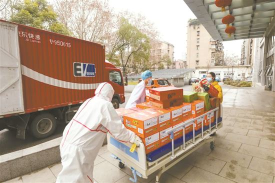 既要抗疫情,也要保民生。武汉住宅小区进入封闭式管理后,市民日常买菜吃饭遇到难题。京东物流武汉亚一城配青年车队为市民配送米面粮油,成为市民“菜篮子”的重要保障。仅2月份,青年车队就为300多万人次配送了6000吨米面粮油、蔬菜等生活用品。