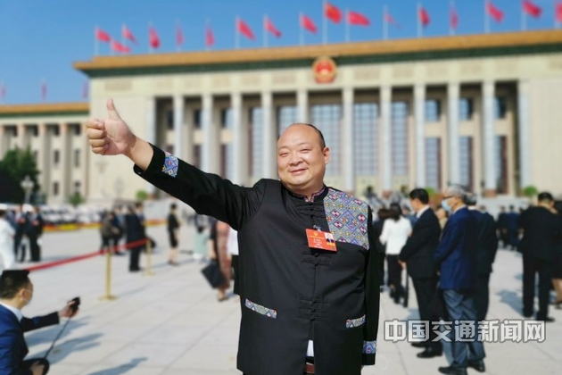 宋庆礼在人民大会堂前为家乡交通运输发展成就点赞。