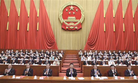 习近平、李克强、汪洋、王沪宁、赵乐际、韩正、王岐山和大会主席团成员在主席台就座。
