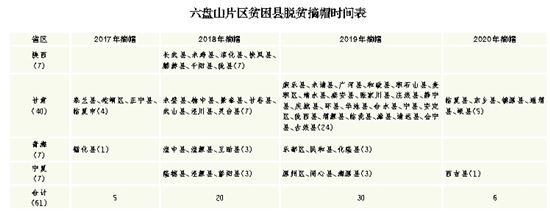 截至2019年年底,六盘山片区尚未摘帽的甘肃东乡县、临夏县、通渭县、岷县、镇原县,宁夏西吉县,合计剩余183个贫困村、18500余户、6.3万多人未脱贫,其中老年人、患病者、残疾人的比例较高,都是最难啃的硬骨头,东乡县、岷县、通渭县的贫困发生率仍在3%以上。