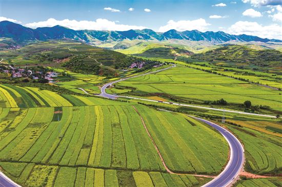 在这里,山水皆灵,无论是层峦叠嶂、云开日出,还是淳朴民俗、红色传奇,皆是亮眼的风景;在这里,阡陌相通,无论是红黑枸杞、五谷杂粮,还是葡萄美酒、苹果梨花,正成抢手的生意。路网畅通处,熙熙攘攘,日益高效的城乡人流物流,促进了农业产业转型升级,也让美丽乡村宜居宜业焕发生机……六盘山,曾经记录下历史转折的奇迹,而今正见证一个摆脱贫困的新时代。