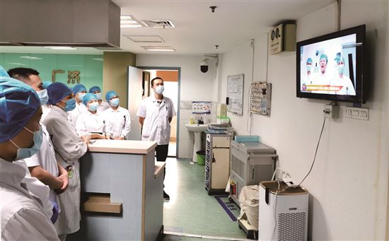 6月19日,长江航运总医院医护人员观看报告会直播。江婷 供图
