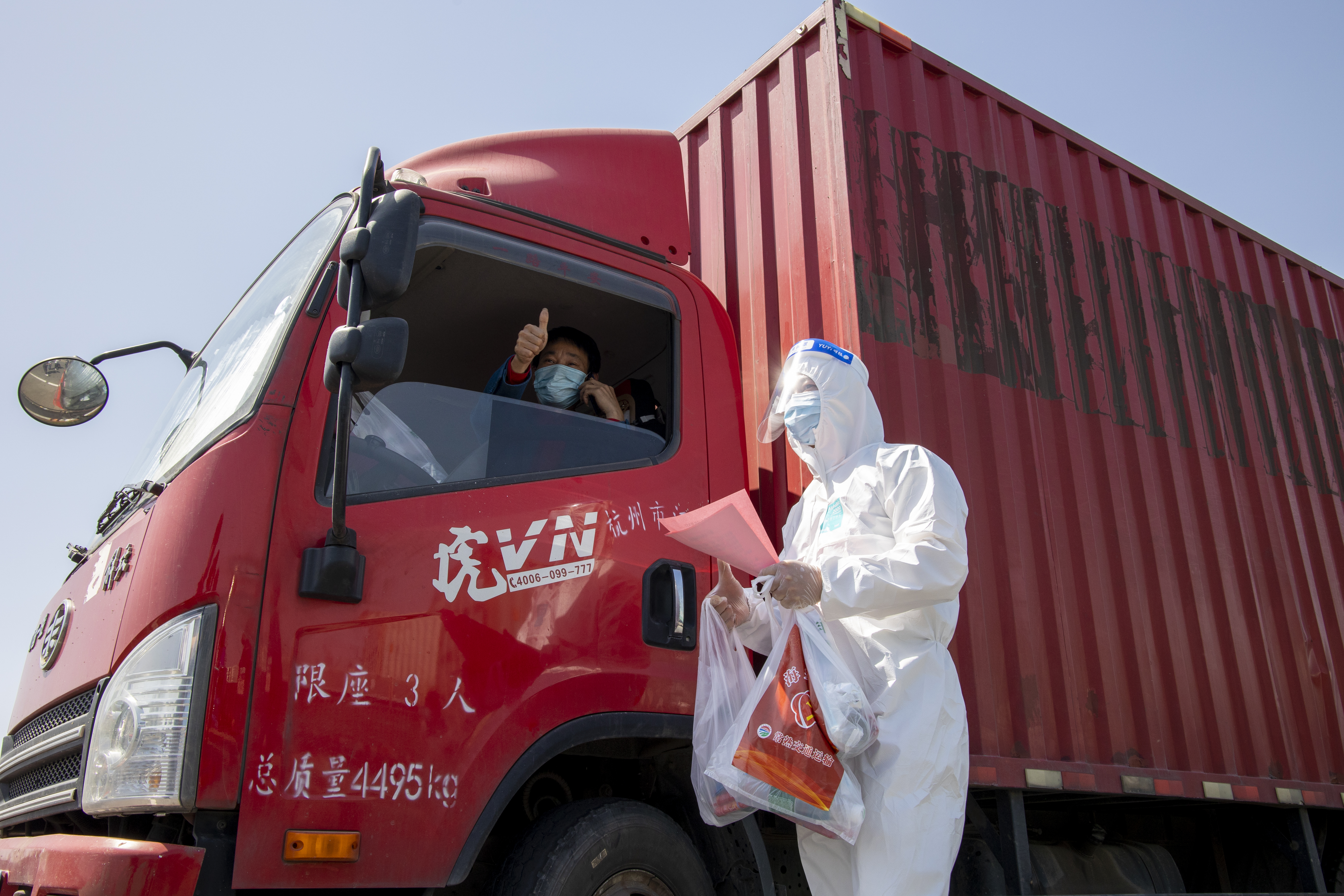 在沪武高速公路常熟收费站,来自浙江的货车司机李师傅领到一份江苏省苏州市常熟交通运输部门发放的“爱心包”。