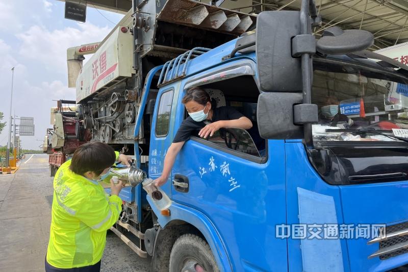 针对联合收割机运输车辆来源地广等情况,河南高速公路发展有限责任公司严格做好疫情防控,跨区机收车辆通行后,定时对收费站重点区域进行消毒,对回收的CPC卡逐张消毒;在收费站设置便民服务台,提供指路问询、政策咨询、维修工具、防暑药品及饮用水等综合服务,及时为司乘人员排忧解难。