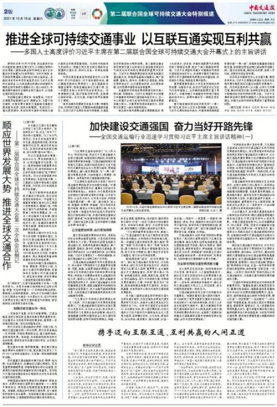 支撑第二届联合国全球可持续交通大会宣传工作,对外宣介中国可持续交通发展成就;办好中国交通转型与创新知识平台(TransFORM)网站,传播中国交通项目案例和行业发展动态。