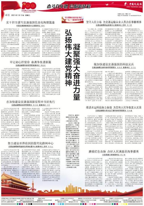 中国交通报始终坚持植根行业、服务社会。积极发挥“专业、权威、引领、服务”功能,因应行业需求,搭建互动平台,传承交通文化,弘扬新时代交通精神,为加快建设交通强国营造良好氛围。