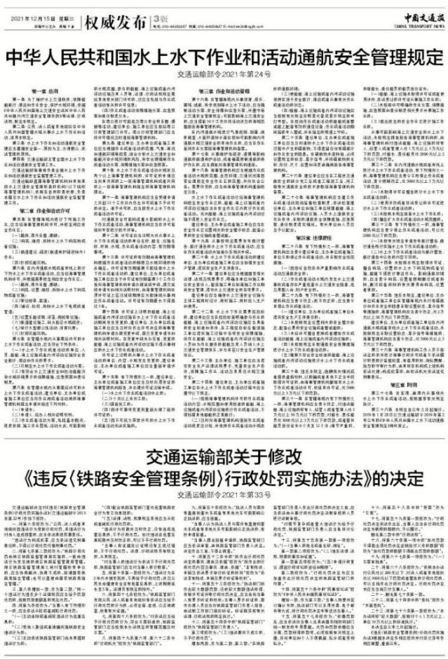 3件作品分获第33届中国经济新闻奖二、三等奖;2件作品在中国记协、中国行业报协会组织的全国性行业类媒体2021年“新春走基层”活动中获全媒体报道精品表彰;1件作品在中国行业报协会组织的2020—2021增强“四力”走基层主题采访宣传报道中获评“优秀新闻作品”;报社推荐的2版摄影专版和2件摄影作品参加2021北京国际摄影周暨“百年奋斗 百年答卷——庆祝中国共产党成立100周年”新闻摄影展;“中国交通报”微信获评交通运输行业十佳微信公众号;本报快手账号获评交通运输十佳快手账号等。