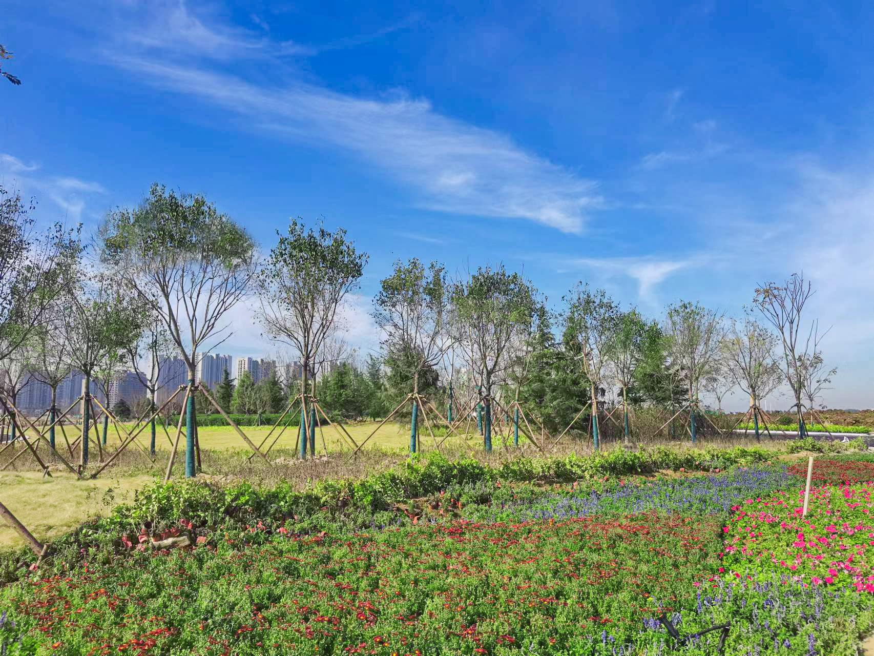上合如意湖水系直通胶州湾,入海口的滩涂湿地是鸟类迁徙的驿站,每年暮春时节,有灰鹤、白琵鹭等超过150种、数十万只水鸟在胶州湾聚集。在施工设计阶段,中交四航局建设团队坚持发展与环境保护相协调、人与自然和谐发展、和合与共的设计理念,根据土壤现状选配适宜生长的植物种类,并通过土壤改良技术,营造景观功能突出的植物配置,形成具有景观、生态、经济和社会服务功能的绿地景观,实现了科学性和生态性、艺术性和观赏性的和谐统一。青岛上合中交投资有限公司总经理廖勇军介绍,“项目团队在如意湖绿化统筹时,充分考虑青岛市树、市花,胶州市树、市花,还选择了耐盐碱植被及新优彩叶植物,主要以常绿针叶植物为主,再配植20%—30%落叶阔叶乔木,打造针阔混交林。主要包括特色树种中山衫、垂柳、刚竹、石楠树,骨干树种榉树、雪松、油松、云杉、黄连木、红梅等,以及一般树种国槐、楸树、黄连木等,地被植物则以耐阴地被为主,如紫薇、二月兰、风雨兰、紫花地丁等,实现多种植物的合理布设。在园林绿化设计中,我们还选取了诸如牡丹、白桦、向日葵、风雨兰等来自上合成员国的代表性植物。市民群众在出行中,可以感受到植被与周边建设的有机融合,仿佛置身于五彩斑斓的植物园。”