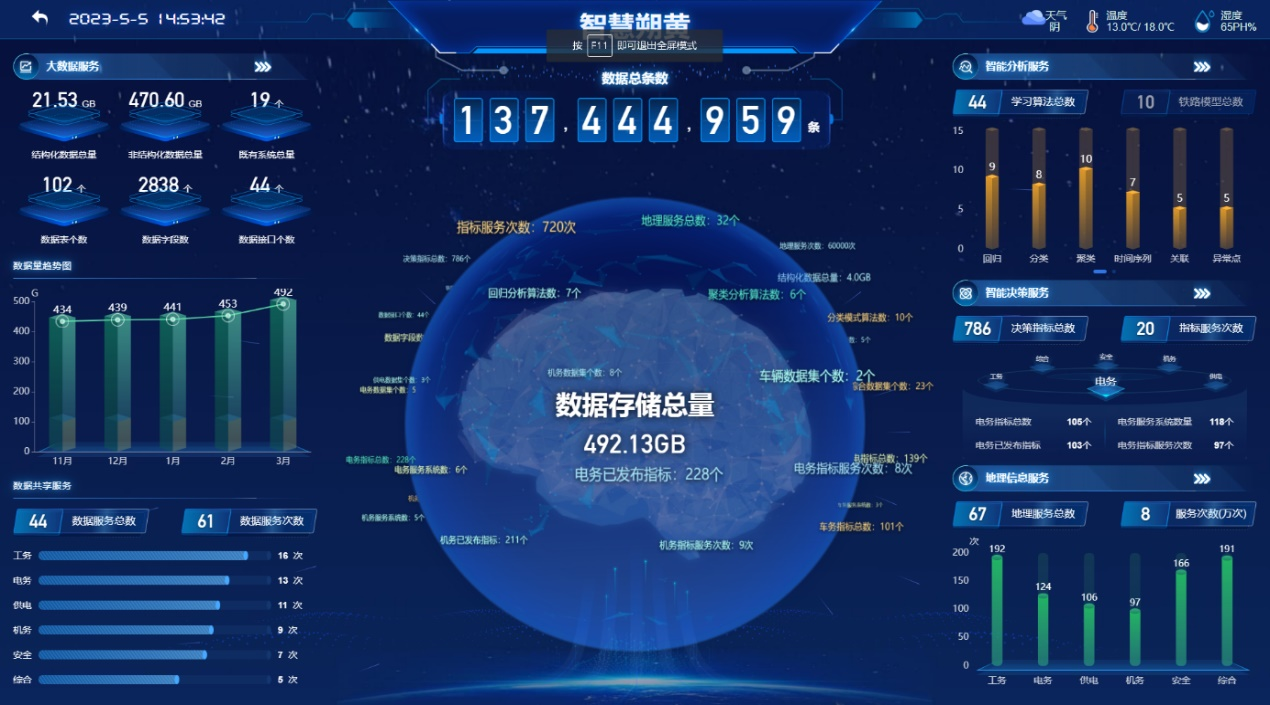 “重载铁路基础设施智能运维系统和智能大脑平台建设,有效弥补了传统运维模式的不足,基础设施维修天窗、人员、设备等资源实现高效共用,生产作业效率、设备质量保持能力、运营安全保障能力显著提升,为基础设施设备‘状态修’推进提供了重要技术支撑。”国家能源集团朔黄铁路相关负责人介绍道,“目前,智能大脑平台已接入既有业务系统19个,形成数据集20余个,研发新算法132余项,构建模型15个,智能运维系统的五大模块可提供近800项应用功能,满足各级用户管理、生产工作需求。”