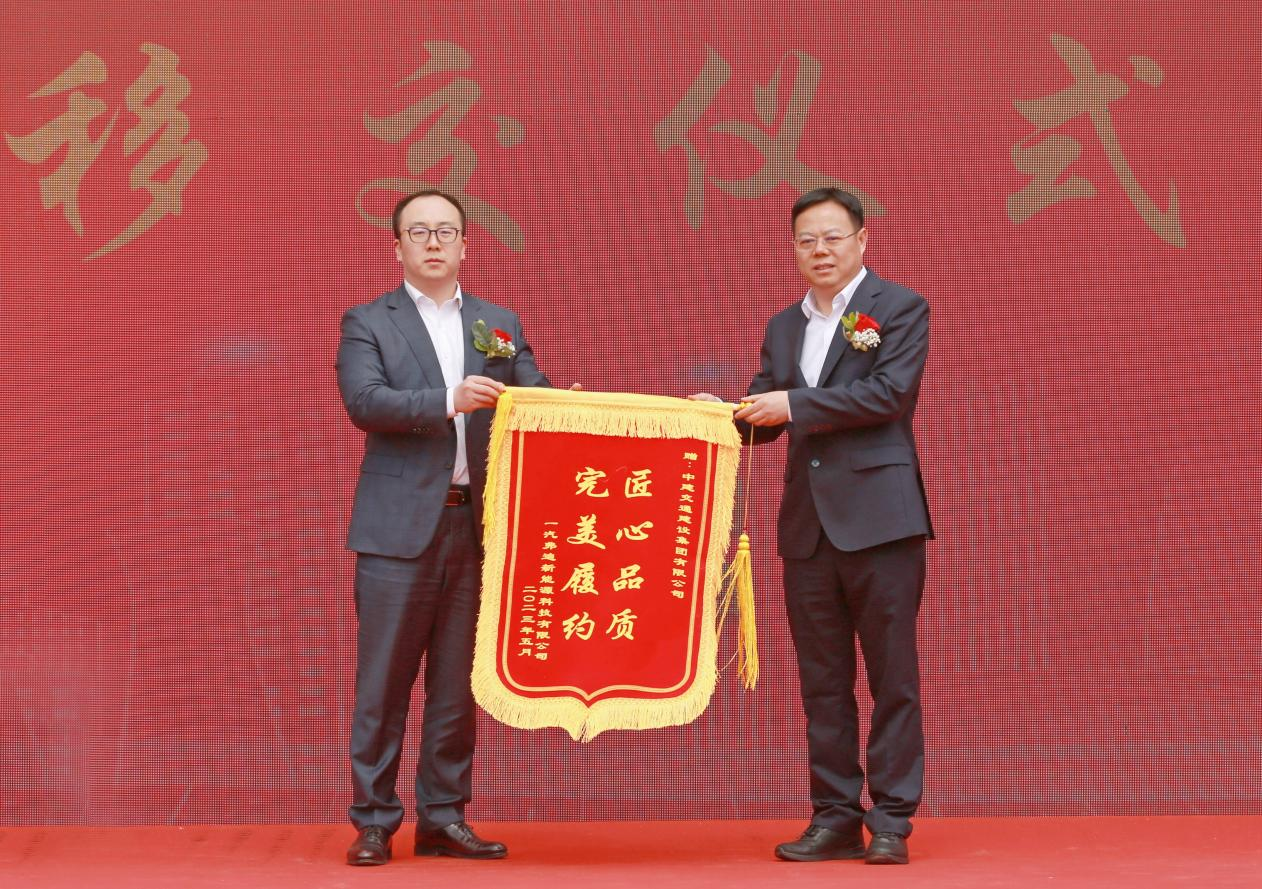 而后,武瑞甲向郑永成赠送锦旗,并对项目的高质量建设表示感谢。