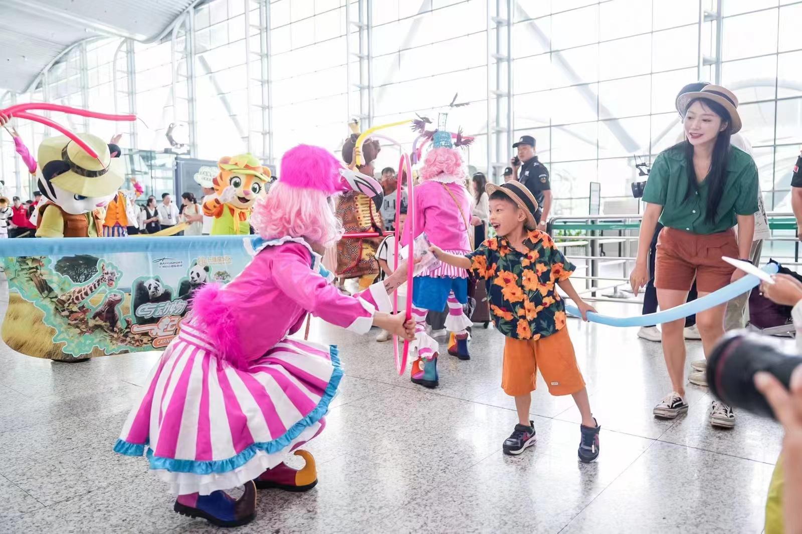 7月17日10点,广州长隆明星动物家族集体“空降”白云机场,一场欢乐巡游在白云机场二号航站楼惊喜上演。据介绍,暑假期间逢周三和周五,白云机场联合长隆乐园将在白云机场航站楼开启多场快闪巡游活动。
