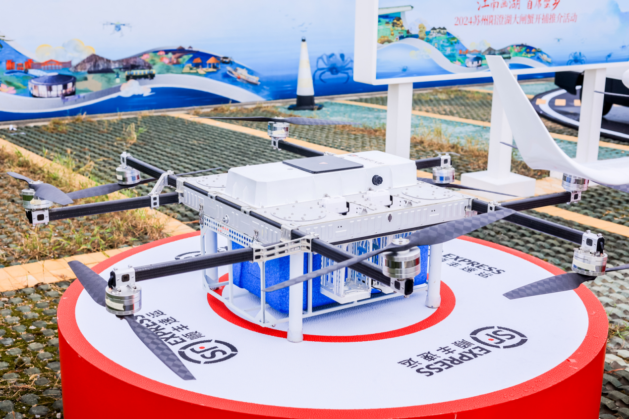 当日10时30分,随着多架无人机呼啸升空,苏州首批“低空+阳澄湖大闸蟹”航线正式启航,佩戴防伪追溯专用标识的阳澄湖大闸蟹陆续搭上冷链车、飞机,运往全国各地的餐桌。开捕现场,苏州顺丰无人机最快4分钟便可将刚捕捞上来的大闸蟹运至顺丰阳澄湖中转场。