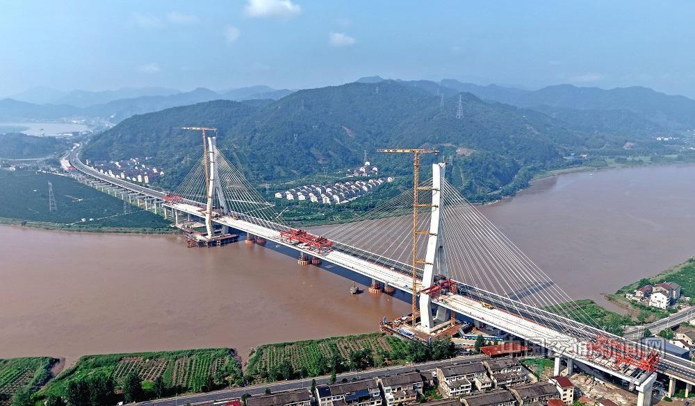 7月13日,浙江交通集团甬台温高速公路改扩建台州北段项目控制性工程——灵江特大桥主桥最后一节巨型钢梁精准就位,标志着灵江特大桥顺利合龙。