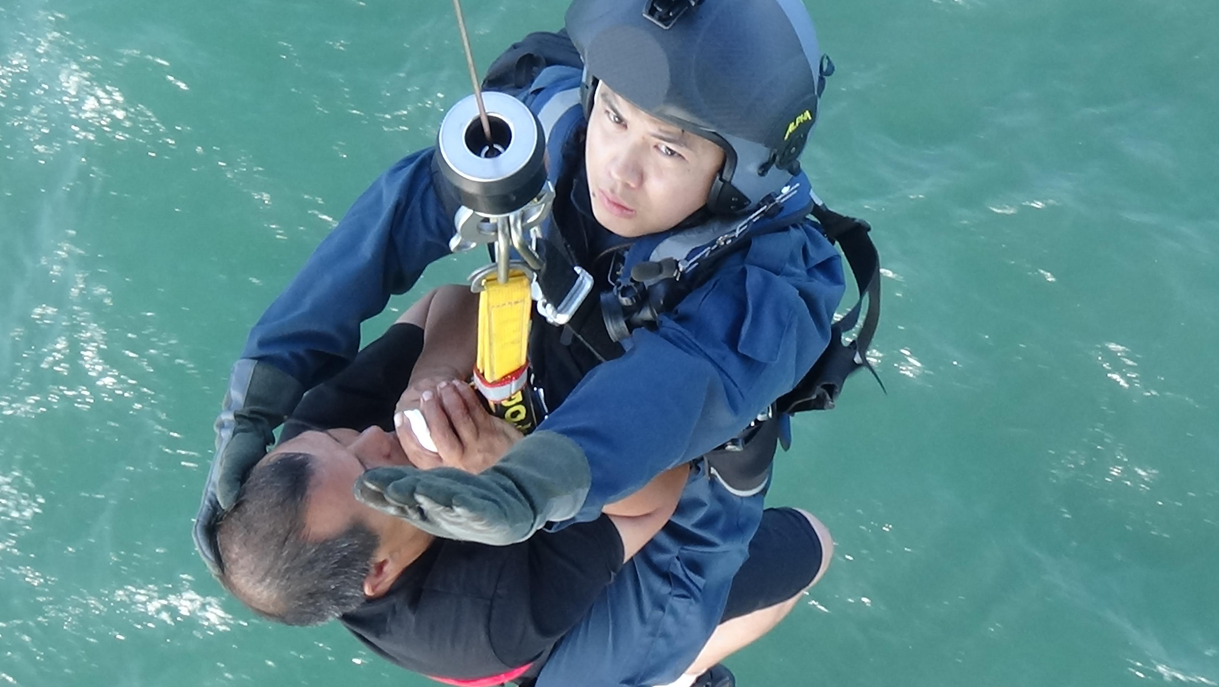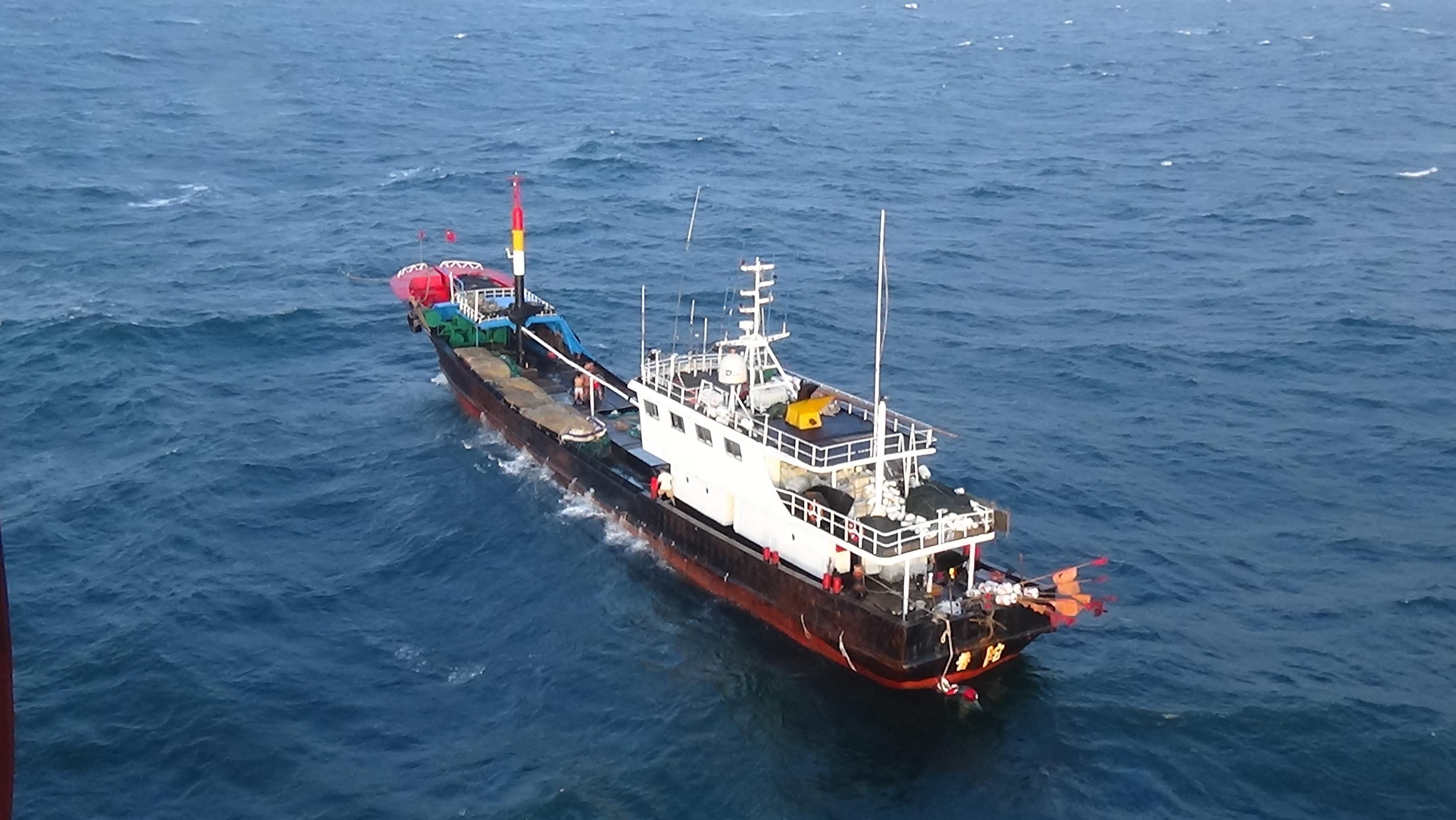 接到指令后,“B-7357”救助直升机先后两次随机携医护人员从上海高东机场起飞,前往救助现场。到达后,迅速开展低空侦查,发现目标船失去动力,稳定性很差,不仅纵向大幅摇晃,还伴有横向大角度横摇,救助机组只能不断依靠模糊的天地线观察外部情况,并通过持续扫视仪表各参数来尽力保持稳定悬停。鉴于渔民受伤、流血不止等实际情况,救助机组研判后通过双人单套救助方式将伤员接至机舱,并由随机医护人员第一时间在救助直升机上对受伤渔民进行紧急医疗处置。随后,一名受伤渔民由救助直升机直飞至医院,送医救治;一名渔民接送至上海高东机场,并通过救护车送往医院进行下一步救治。