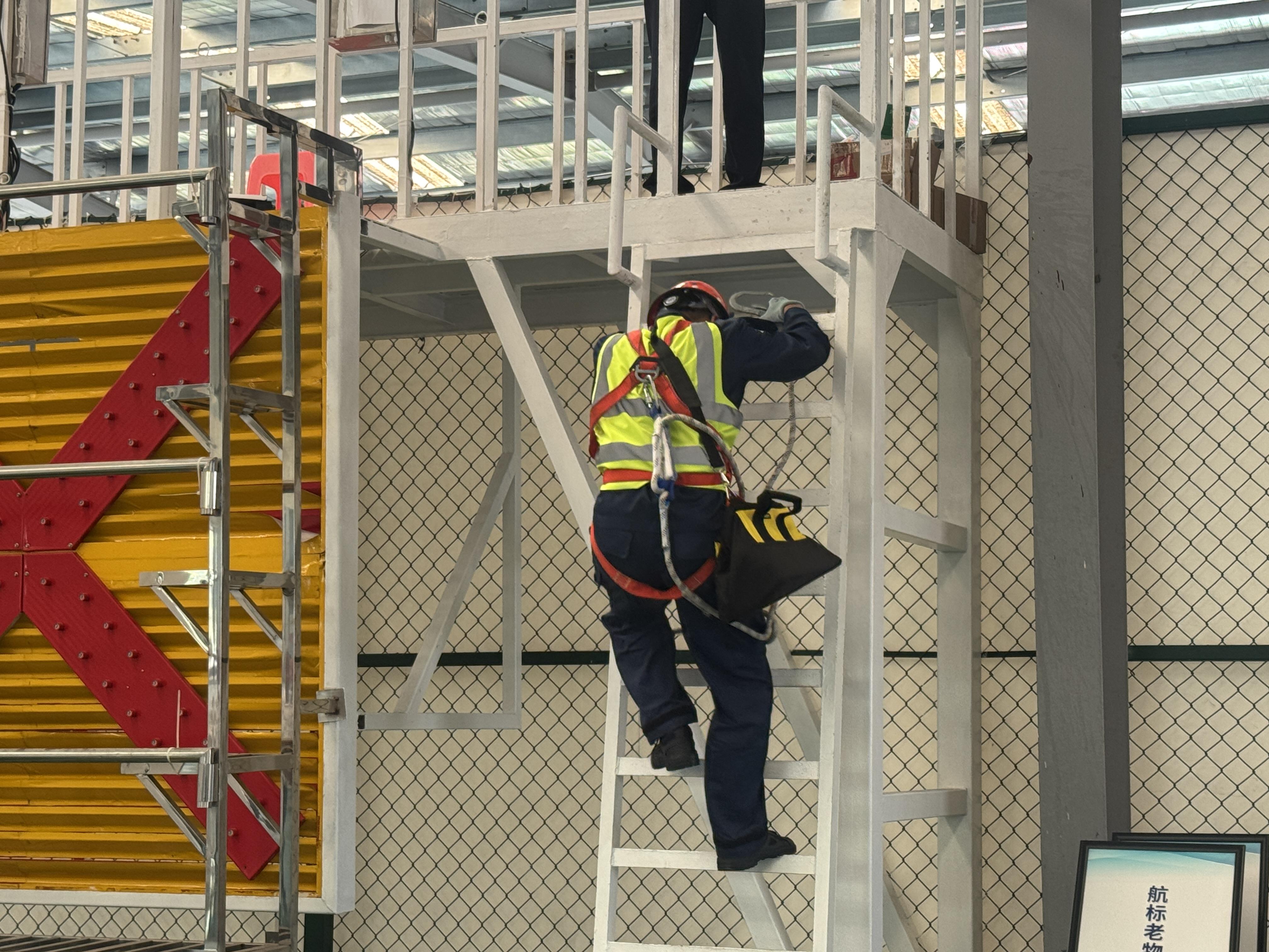 值得注意的是,本次竞赛中两项实操项目都对操作细节提出了严苛要求:桥涵标配电维护须在断电前提下操作、攀爬至作业平台时安全带挂钩系挂点不得低于腰部、灯浮标闪光周期测试须满3次完整周期……对此,本次竞赛裁判员陆回表示:“在日常工作中,如果航标工没有严格按照规范操作,将会带来巨大的安全隐患。竞赛正是通过将日常维护的关键细节转化为评分卡上的硬指标,让一线工作者将规范刻入本能。”